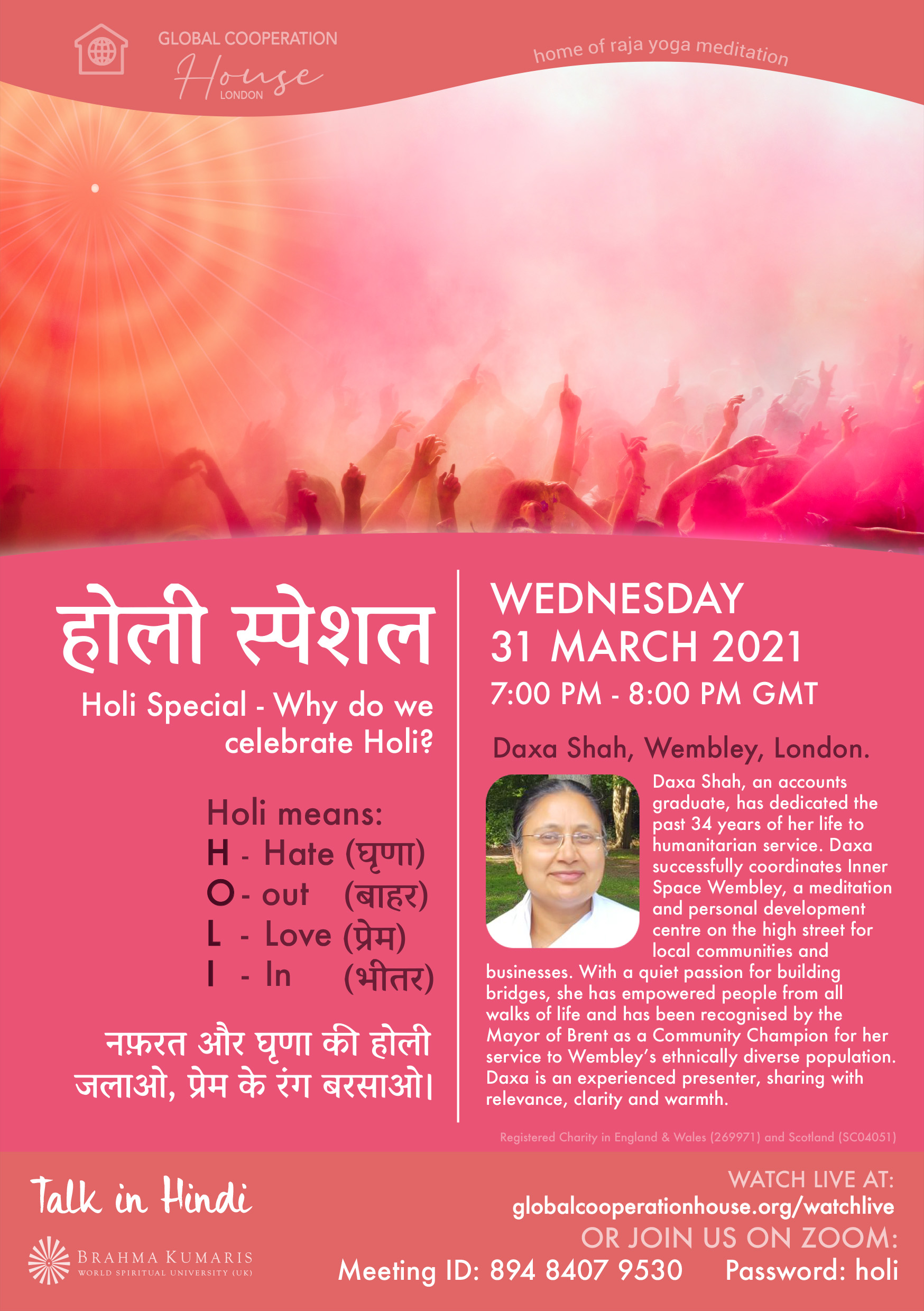 नफ़रत और घृणाकी होली जलाओ, प्रेमकेरंग बरसाओ। Hate Out, Love In.