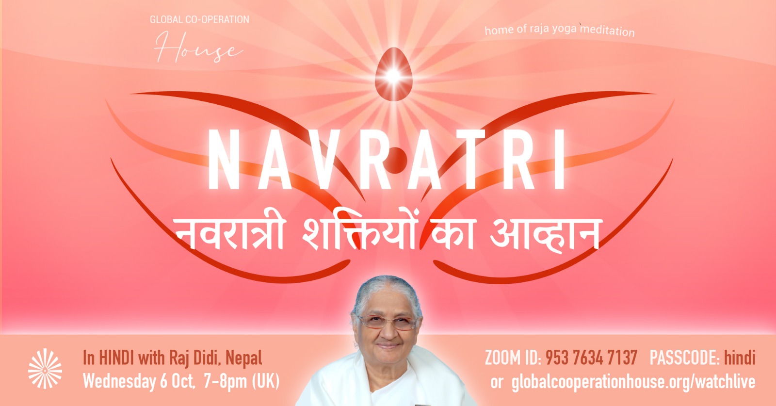 Raj Didi was born in Punjab, India, and was introduced to the Brahma Kumaris in 1960, shortly after which she surrendered her life to Godly service. She has organised and hosted many national and international programmes such as meditation retreats, workshops, seminars, conferences, including health campaigns, environment campaigns and many more.