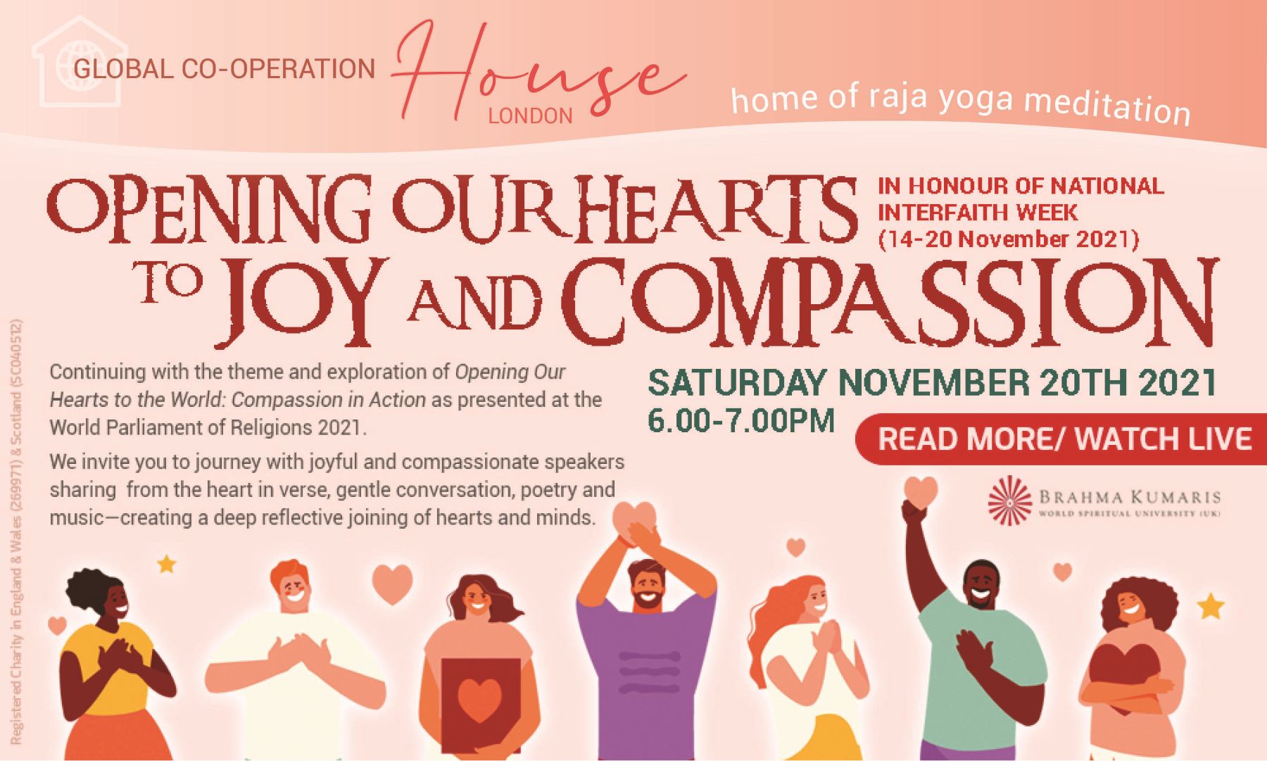On Saturday, November 20th from 6pm, to honour the final weekend of National Interfaith Week we shall be showcasing a video collaboration with the World Congress of Faiths, called ‘Opening Ourselves to Love and Compassion’ This was first presented to the Parliament of World Religions Virtual Conference in October this year.