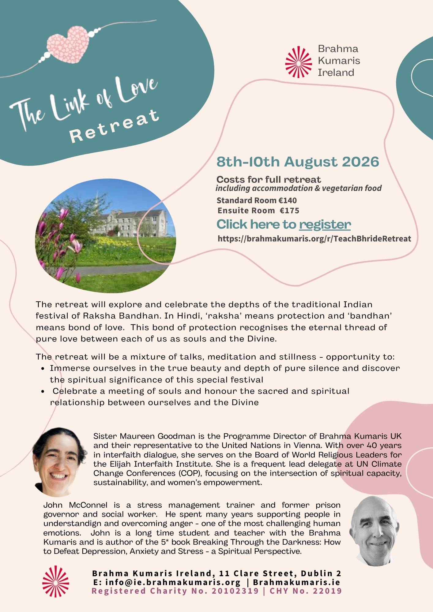 (programme to follow) The retreat suitable for 18+ years and the centre is an alcohol and smoke free zone